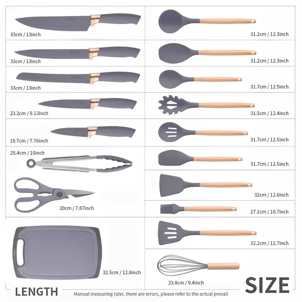 - COMPLETE KITCHEN TOOL SET: This comprehensive set includes 19 essential cooking tools to equip your kitchen with everything you need to prepare meals.